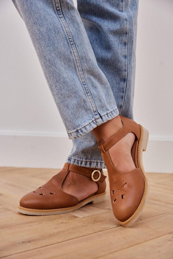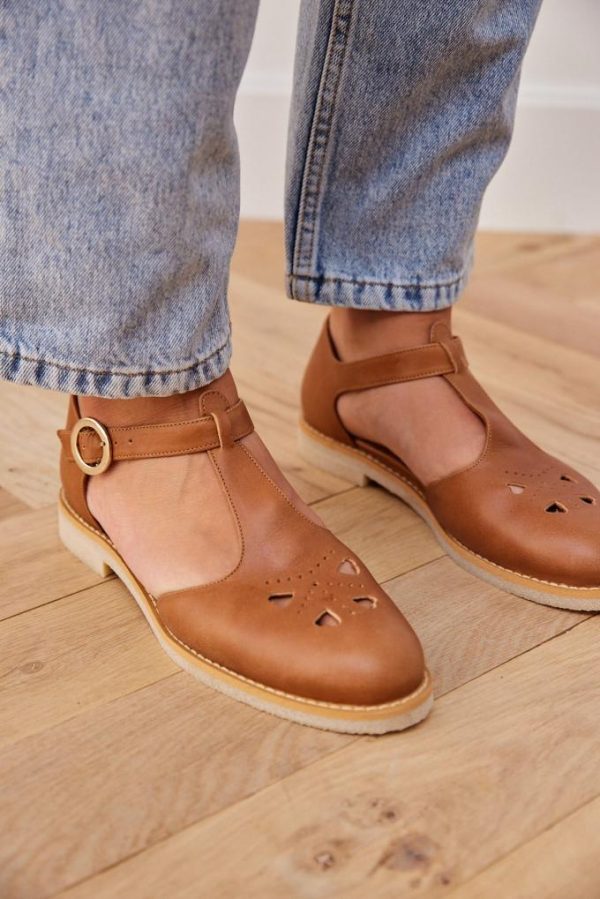 Mettez vos pieds à l’abri dans ces jolies Aloïs au cuir camel et aux délicates perforations sur la pointe de la sandale.