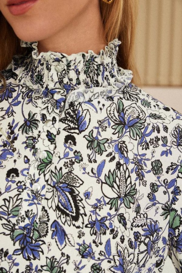 La blouse Une Fois imprimé jardin en fleurs incarne l’élégance parisienne avec sa patte de boutonnage raffinée, ses manches délicatement ajustées et son col charmant qui sublime la silhouette féminine.