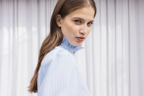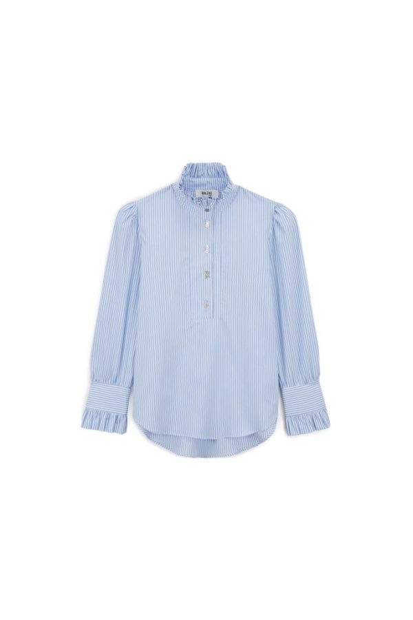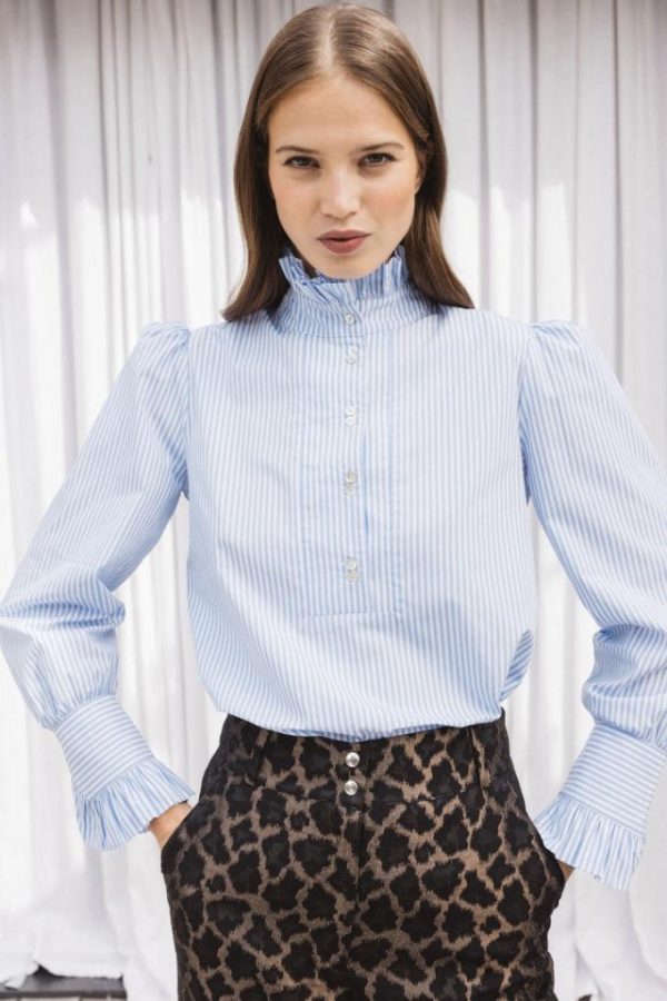 La blouse Source rayures bleues vous rendra très féminine avec ses manches resserrées et son col montant.