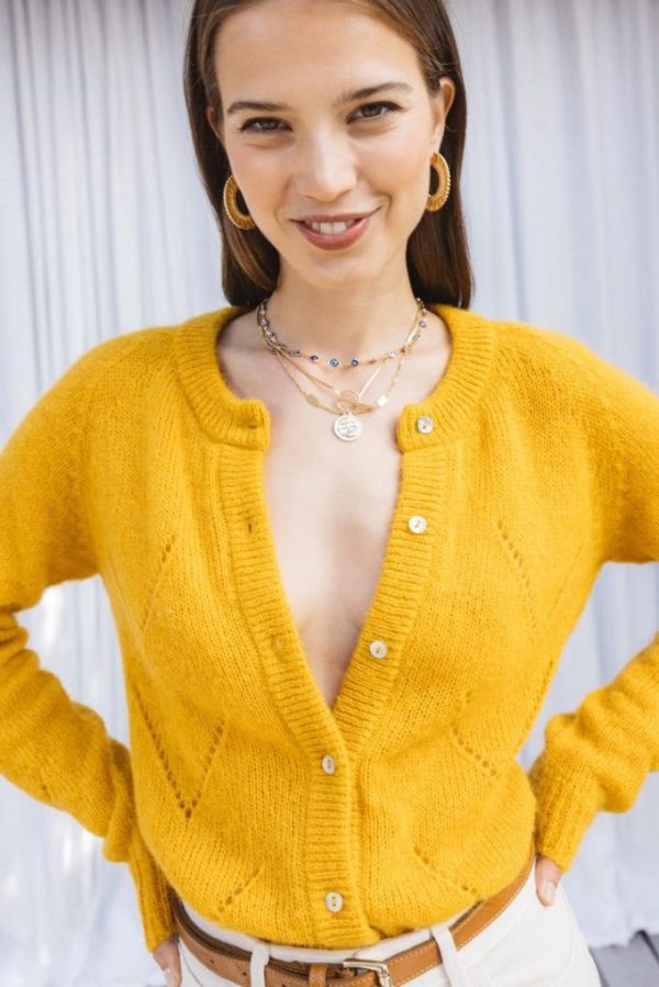 Découvrez le Caleb jaune gold, le cardigan signature Balzac Paris qui enveloppe d’une douceur exceptionnelle grâce à son mélange précieux de mohair et d’alpaga. Votre pièce incontournable pour affronter l’hiver avec élégance et chaleur.
