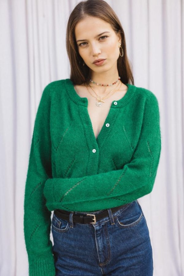 Ah le Caleb vert, l’incontournable cardigan de Balzac Paris si doux et confortable grâce à sa laine mélangée en mohair et alpaga ! À coup sûr votre allié de cet hiver !