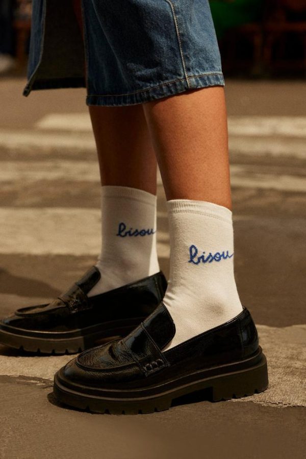 Les chaussettes Love Bisou bleu et blanc allient douceur exceptionnelle et élégance raffinée. Plongez dans un confort absolu et une esthétique parisienne inimitable.