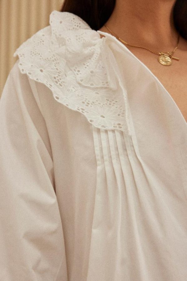 La chemise Fossette blanc naturel et son double volant se porte été comme hiver.