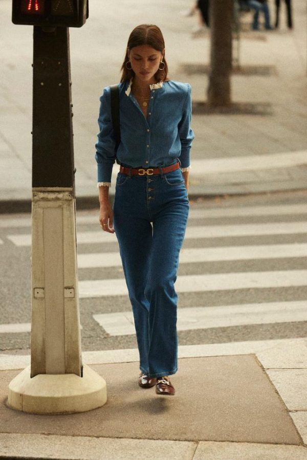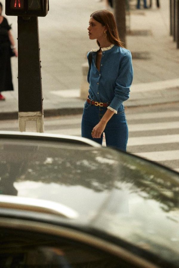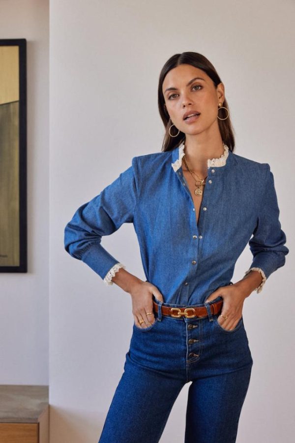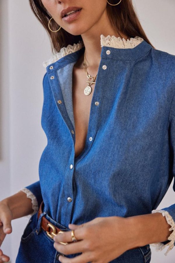 La chemise Léopoldine en jean se pare d’une ravissante dentelle blanche sur le col et les poignets ainsi que de boutons pressions argentés sur le devant. Confort et délicatesse assurés !