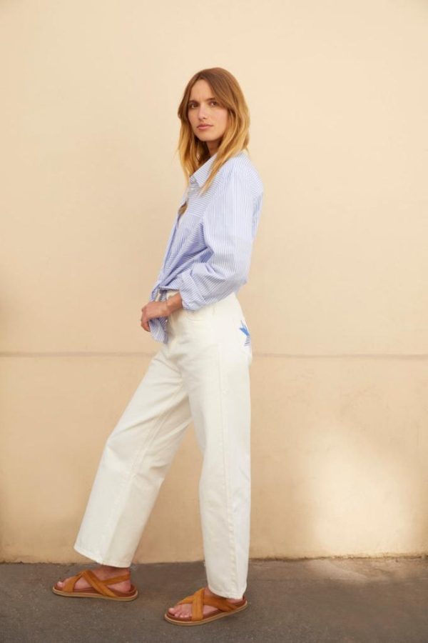 Notre chemise Ulysse bleu à rayures sera le nouveau basique de votre dressing. Souple et de belle qualité, cet indispensable est doté d’un joli col et de boutons fins sur le devant.
