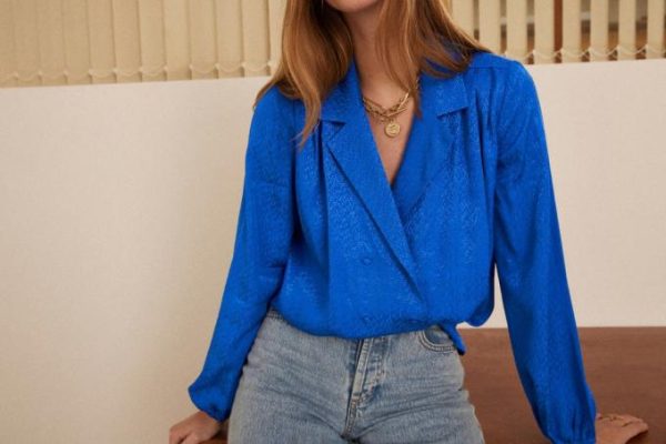 La chemise Volute jacquard bleu va vous séduire avec sa jolie patte de boutonnage et son effet resserré aux manches.