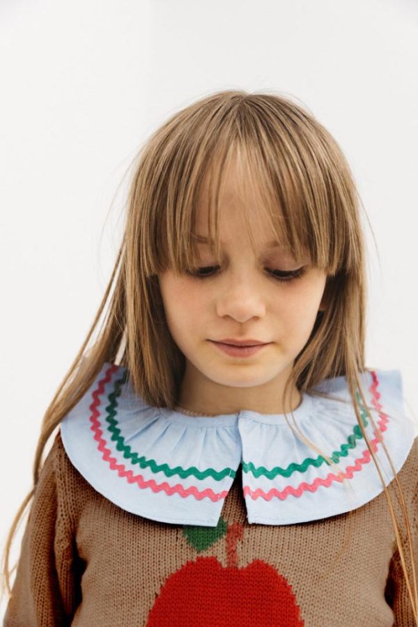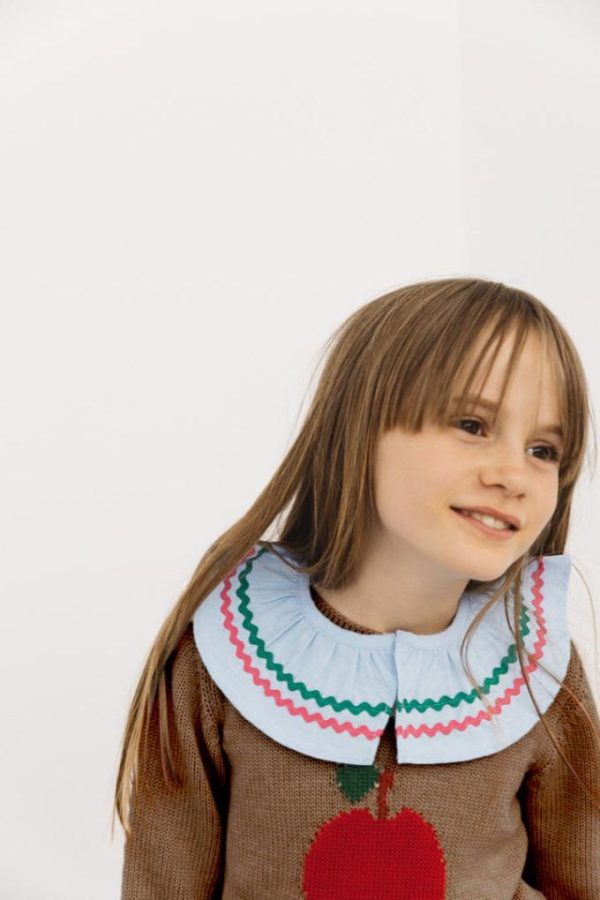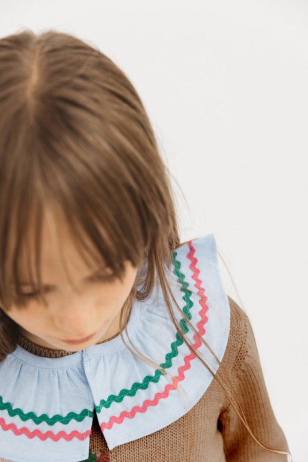 Le col Comice bleu aux vagues colorées apporte une touche de poésie et d’élégance à une blouse ou un tee-shirt basique.