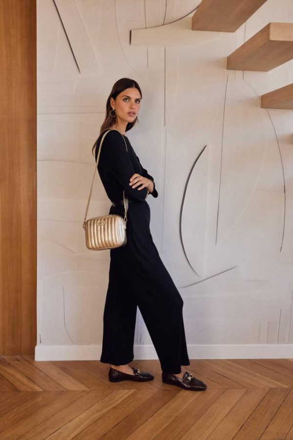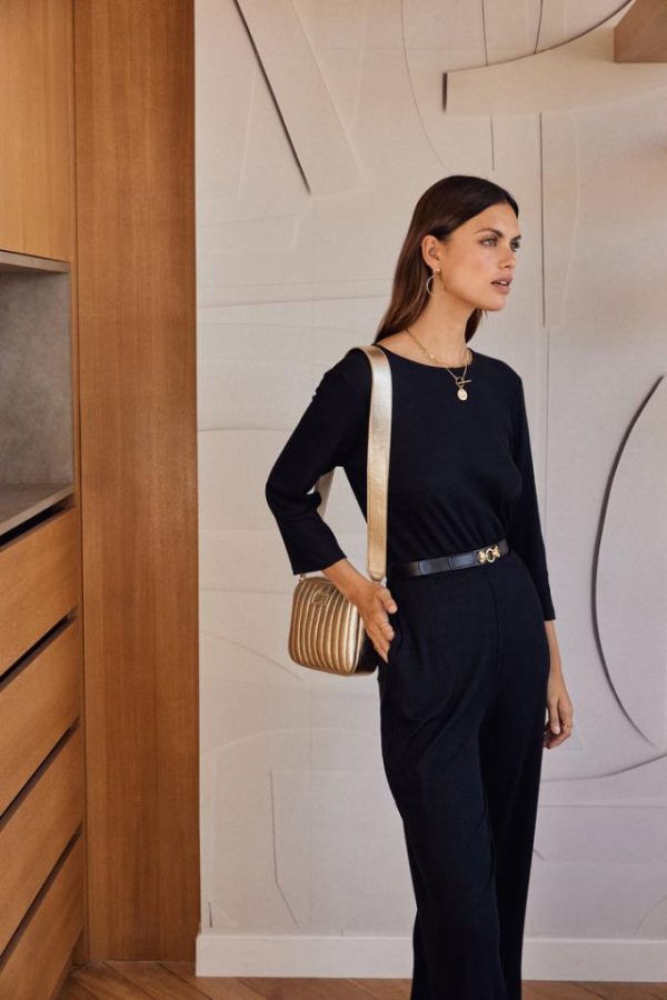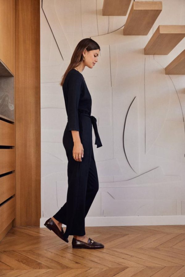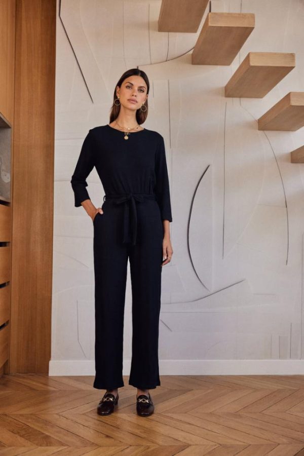 La combinaison Hirondelle noir incarne l’élégance parisienne avec sa ceinture ajustable qui sublime la silhouette.