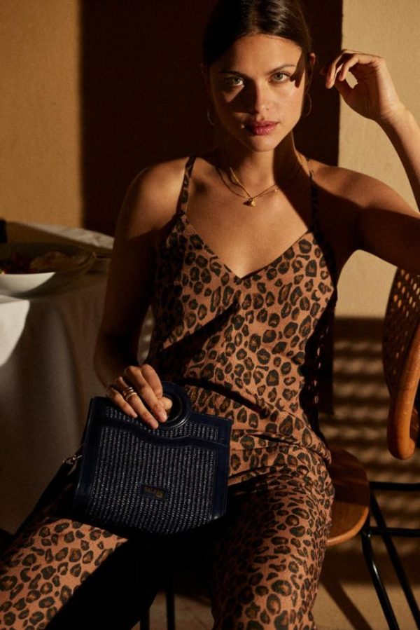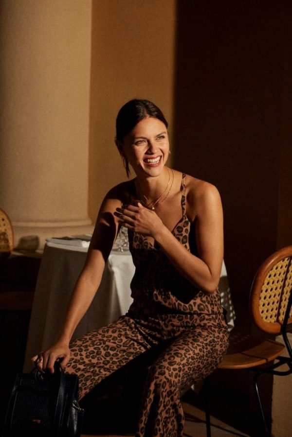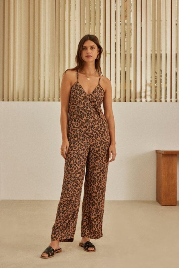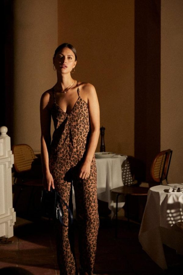 La combinaison Senteur léopard, une pièce d’exception pour sublimer votre silhouette estivale avec son dos audacieux, sa coupe structurée et son imprimé sauvage d’une élégance raffinée.