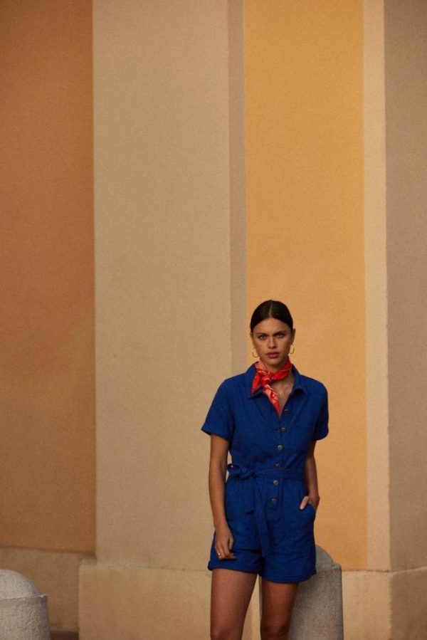 Notre combinaison Floralie se décline en bleu de travail pour un été écoresponsable et haut en couleur !