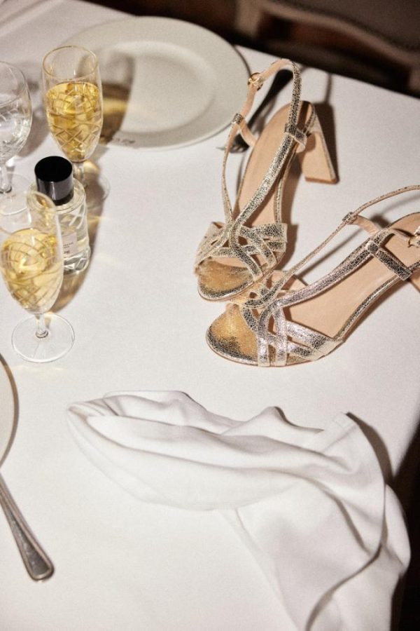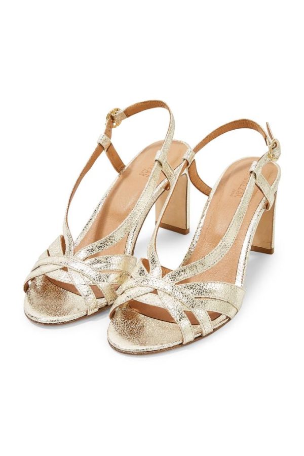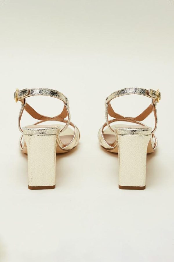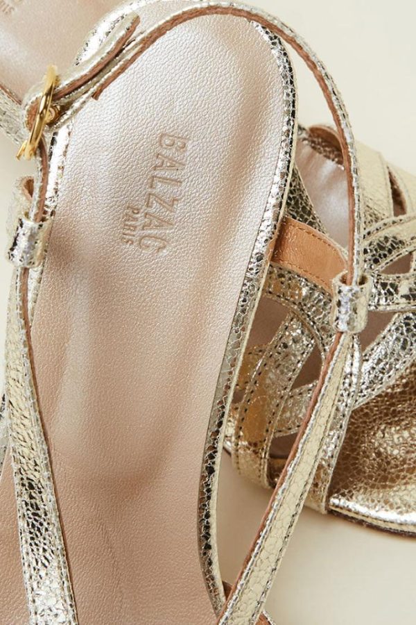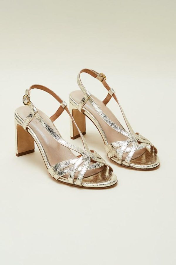 Les escarpins Bal doré sont très féminins avec la forme de leurs talons, le croisement à l’avant de la chaussure et l’attache sur le côté.