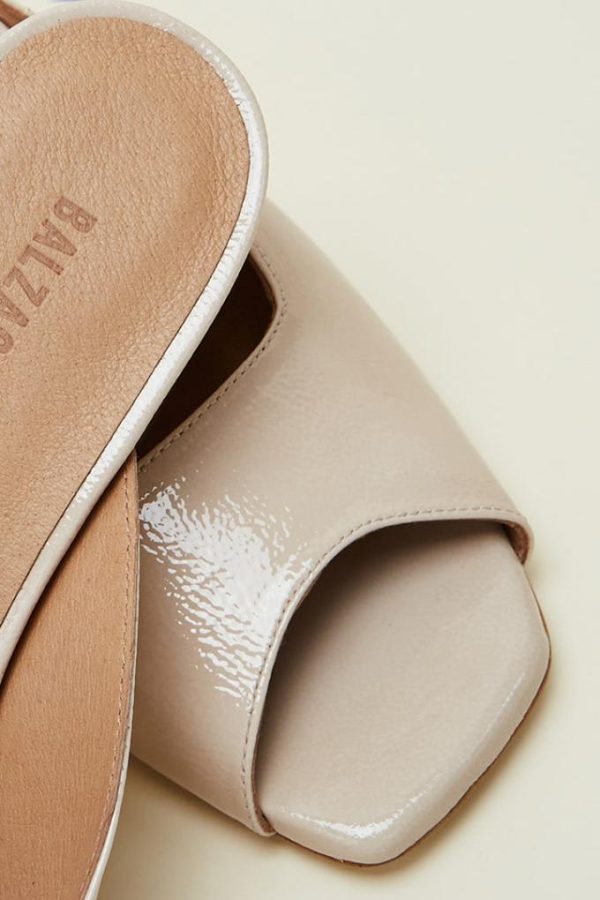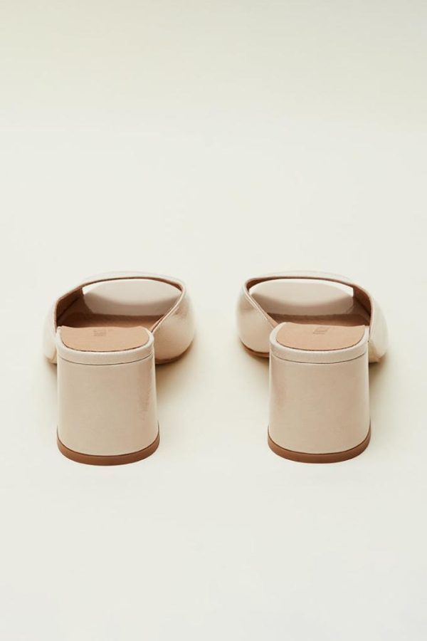 Les escarpins Mystique vernis froissé écru doivent leur éclat à leur forme.