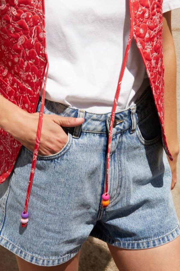 Gilet idéal pour l’été, à nouer au-dessus d’une blouse. Son atout : il est réversible.