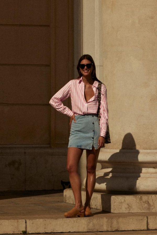 Lumineuse, la mini jupe Brio bleu glacier enchantera vos belles tenues d’été. Sa forme saura élancer avec délicatesse votre silhouette.