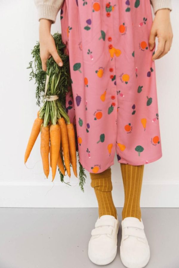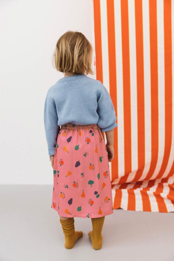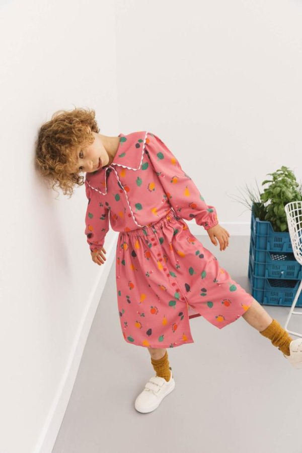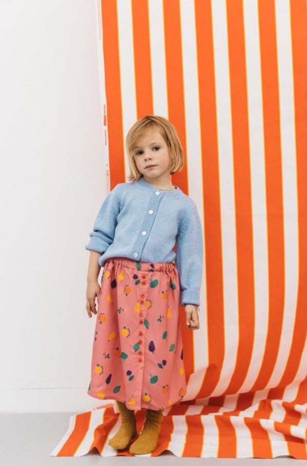 Découvrez la jupe Courgette, une pièce délicate au charme incontestable avec son boutonnage distinctive et son imprimé botanique qui sublime la grâce enfantine.