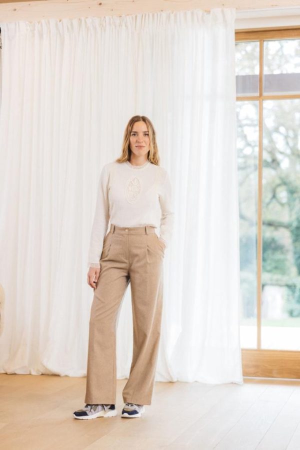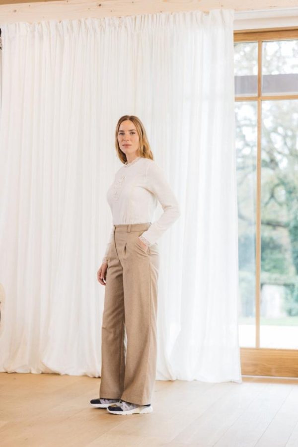 Le pantalon John beige incarne l’élégance parisienne avec sa coupe sophistiquée et sa taille haute structurante. Sa silhouette évasée dévoile une allure raffinée tandis que sa composition premium vous offre une chaleur enveloppante tout au long de l’hiver.