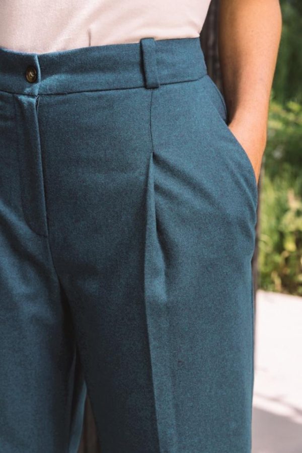 Le pantalon John bleu canard est élégant avec sa taille haute et sa coupe évasée. Son petit plus ? Il vous tiendra chaud tout l’hiver.