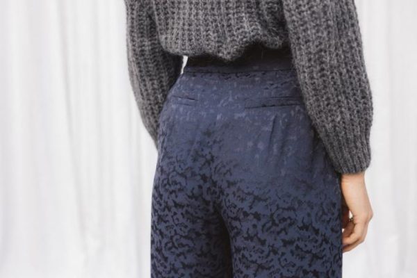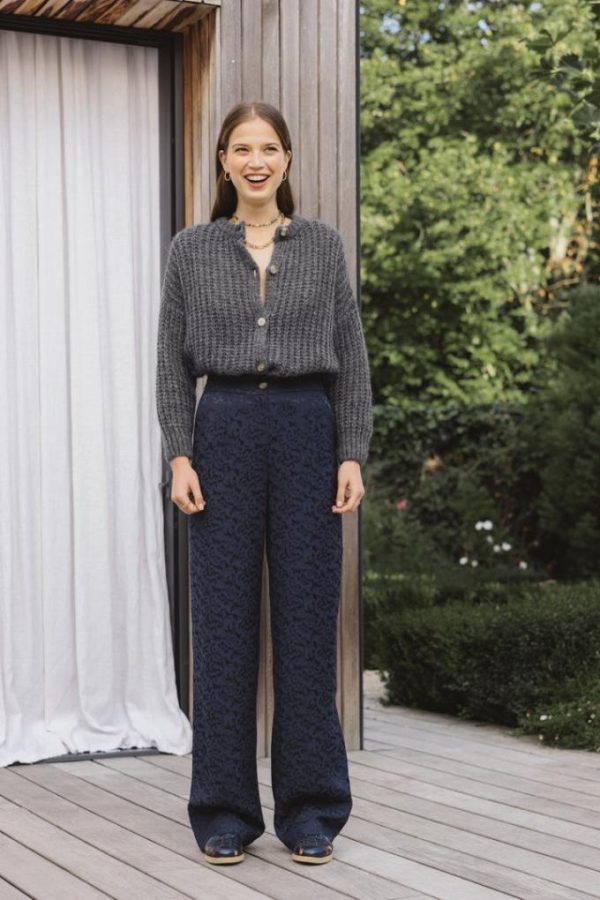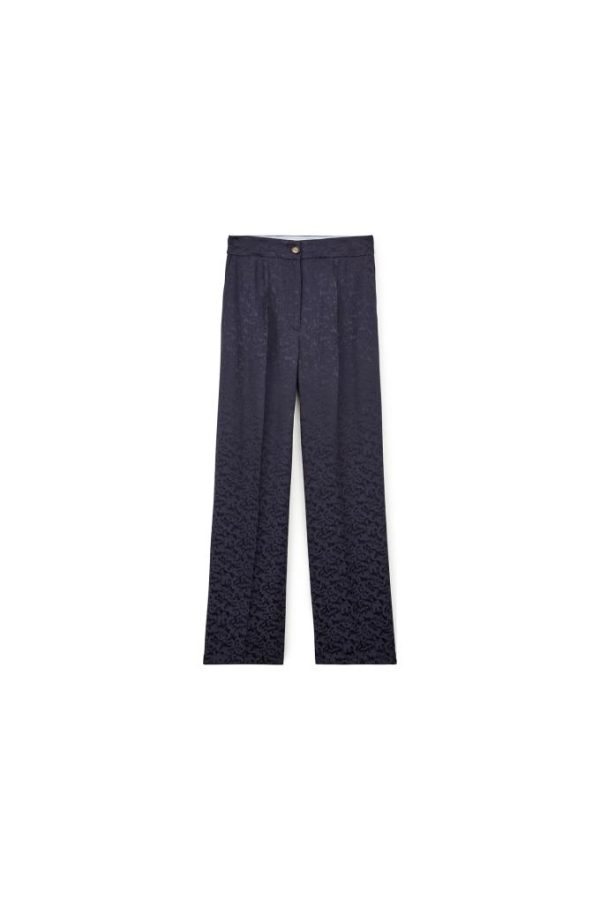 Le pantalon Libre jacquard marine allie sophistication et élégance avec sa coupe droite raffinée qui sublime la silhouette.