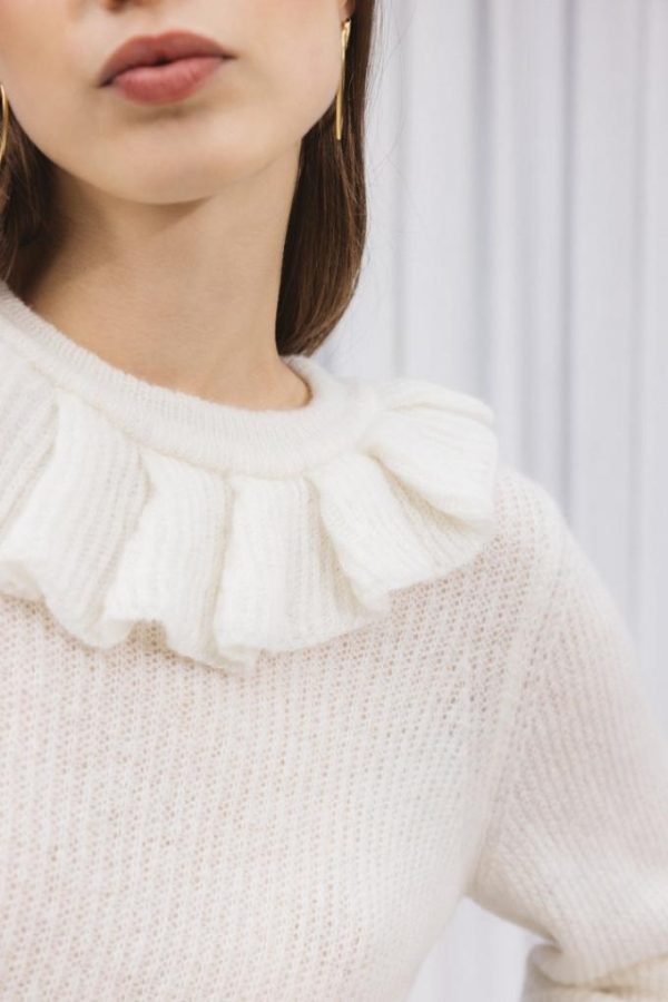 Le pull Emboir écru vous habille en un clin d’oeil ! On en est sûrs, son col collerette ne vous laissera pas indifférente.