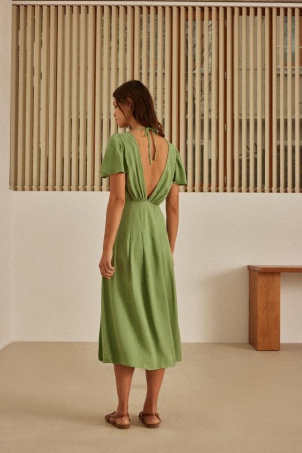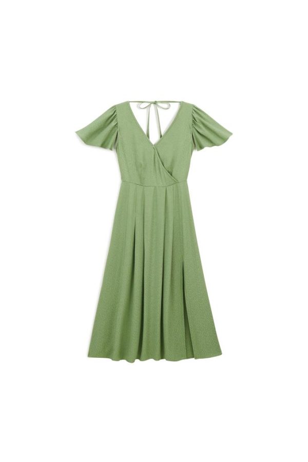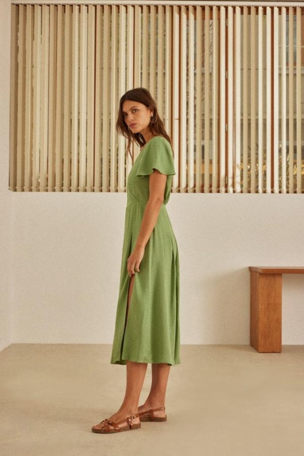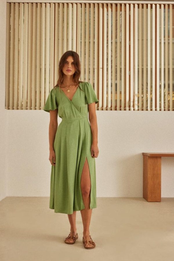 La robe Coral vert sauge incarne l’élégance intemporelle, parfaite pour sublimer votre silhouette au quotidien comme lors d’occasions spéciales.