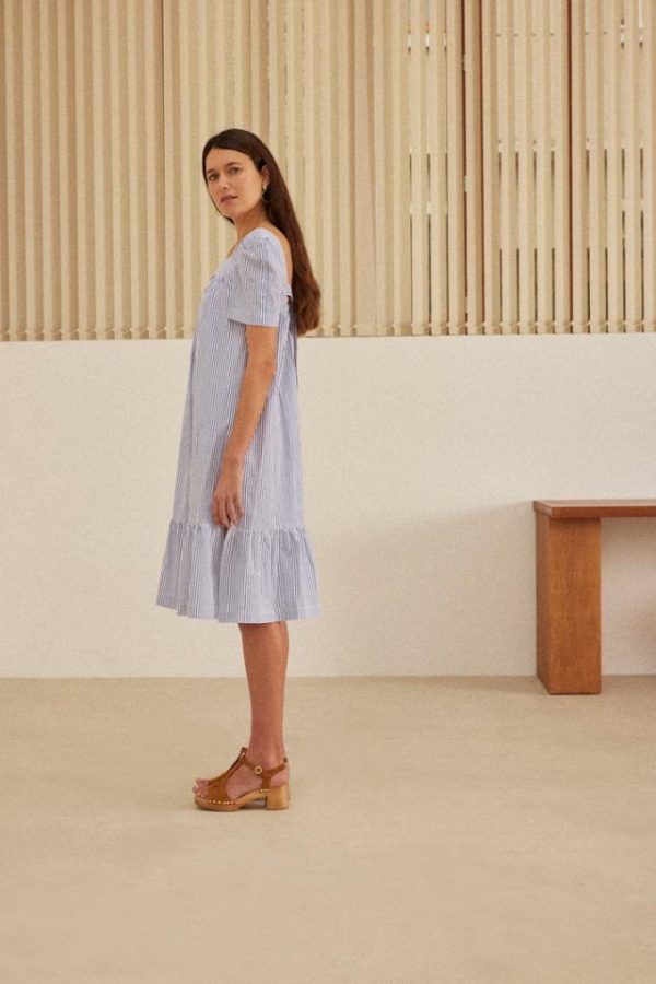 Volants et col carré donne à la robe Etincelante un effet printanier.