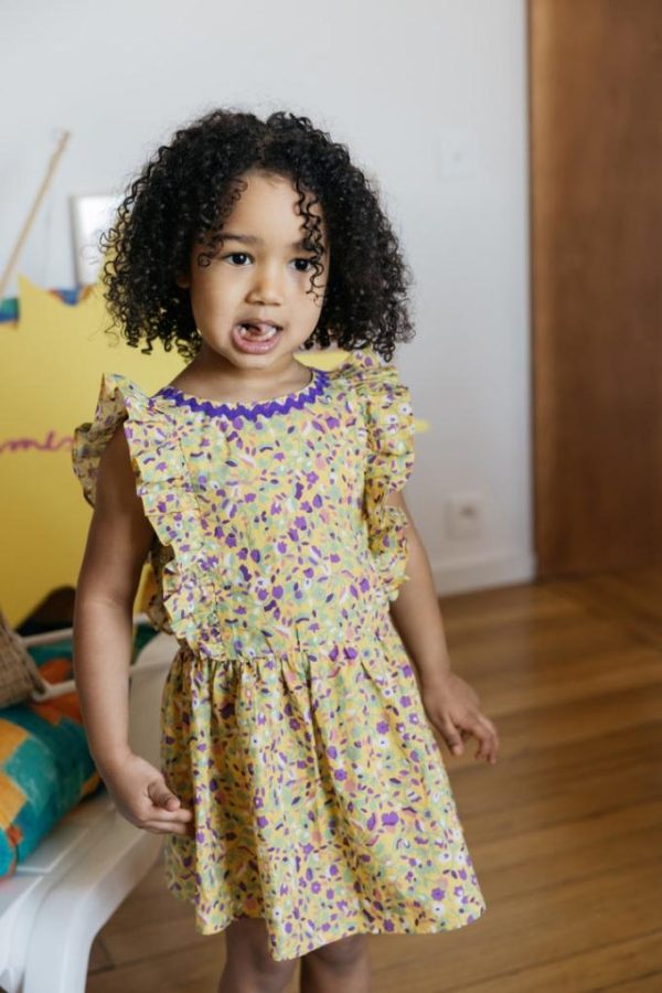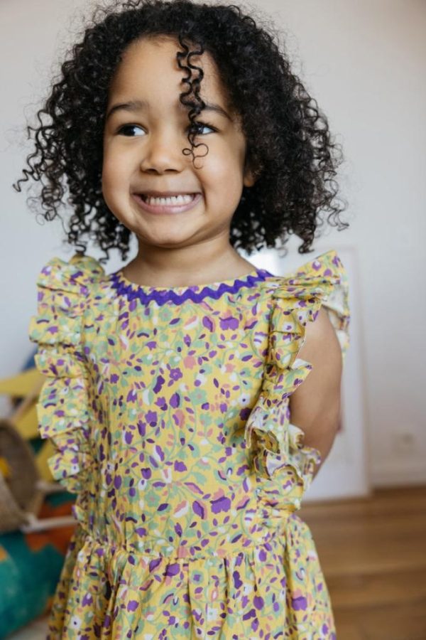 La robe Indice imprimé kyrielle de fleurs est très féminine avec ses volants. Glissez-la sous une jolie veste estivale.