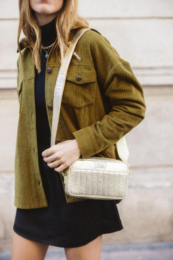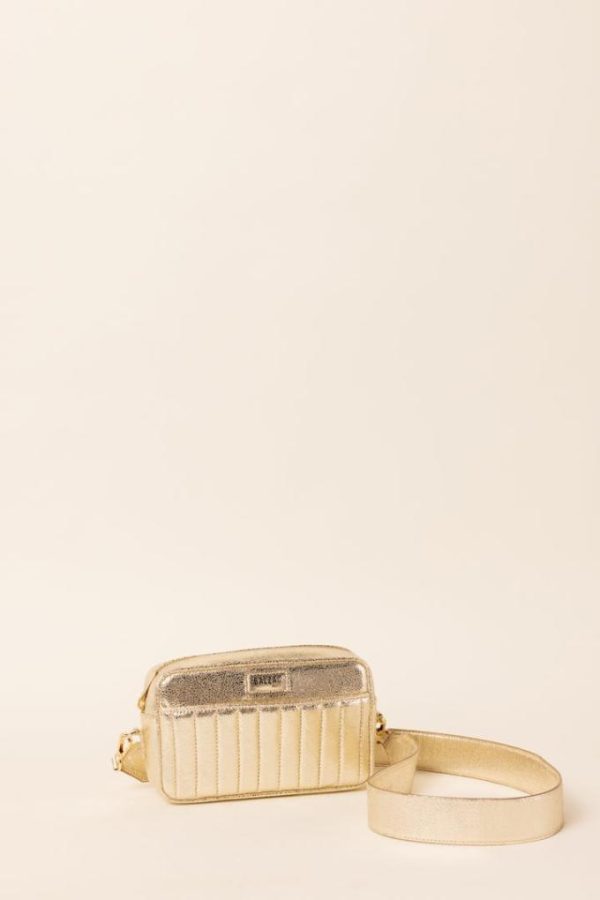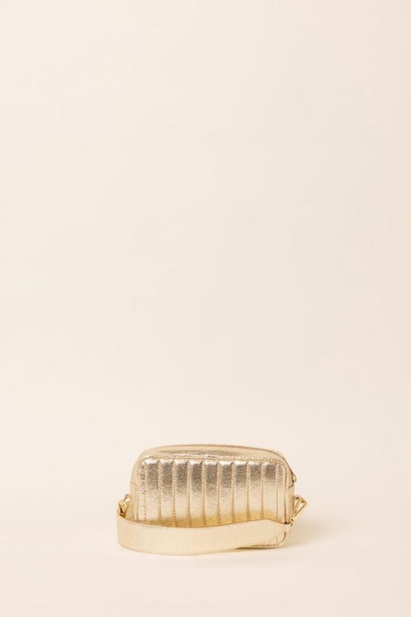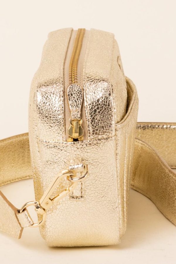 Le sac Cléo craquelé doré est très pratique de par son format et élégant de par son effet matelassé sur le devant.