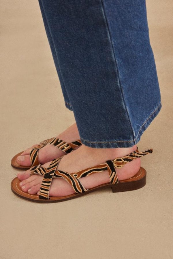 Les sandales Bruyères pony tigre sont très féminines avec leur jeu de croisements sur le devant. Toutes les occasions sont bonnes pour les porter.