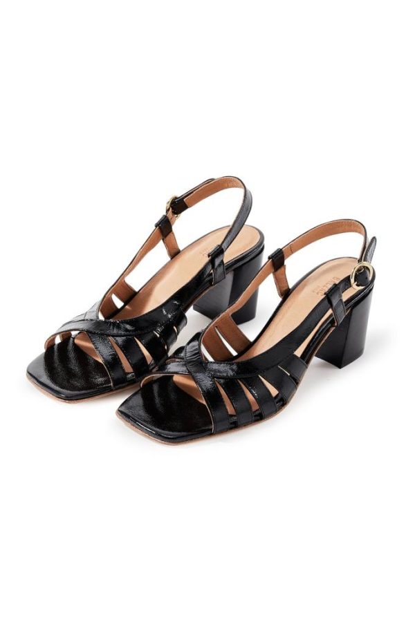 Dévoilez vos pieds dans les sandales à talons Patience vernis froissé noir avec l’arrivée des beaux jours.