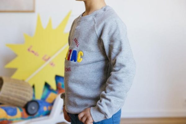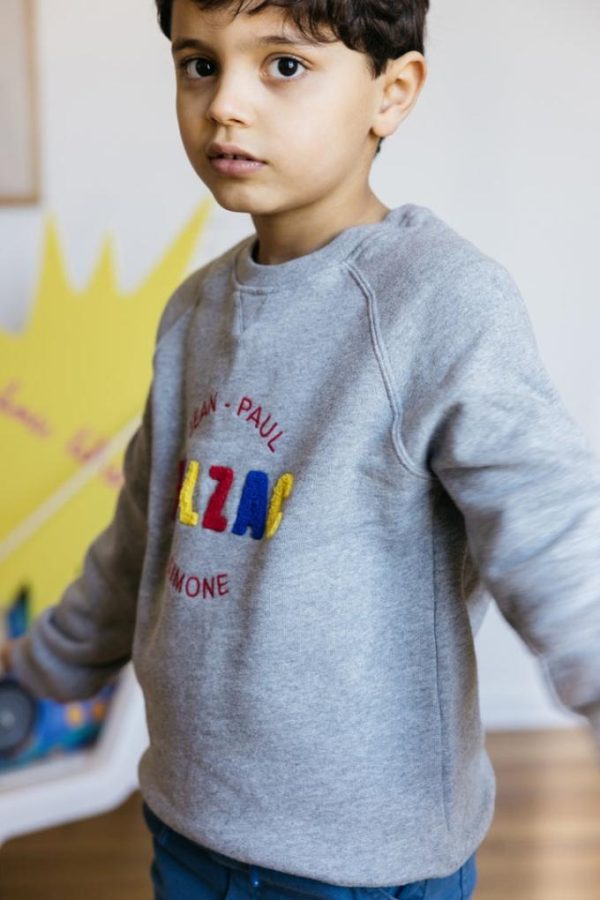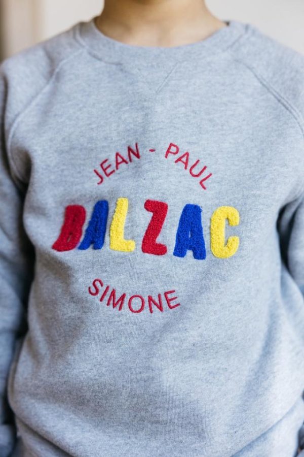 Le sweat-shirt littéraire gris, un incontournable Balzac Paris. Vos petits seront au chaud tout l’hiver.