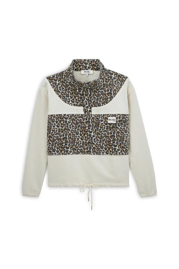 Pour un look sauvage et chic, adoptez le sweat-shirt Prévert écru et léopard.