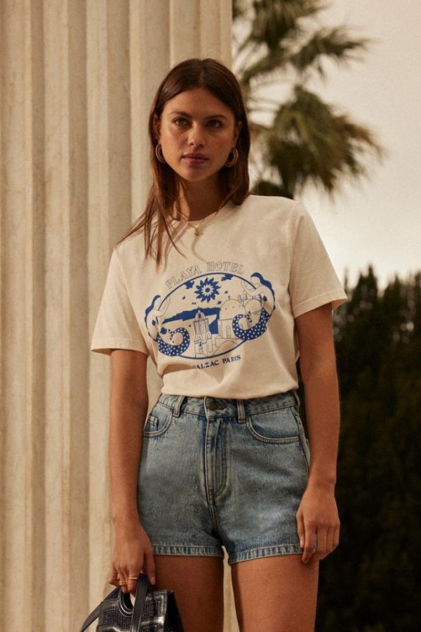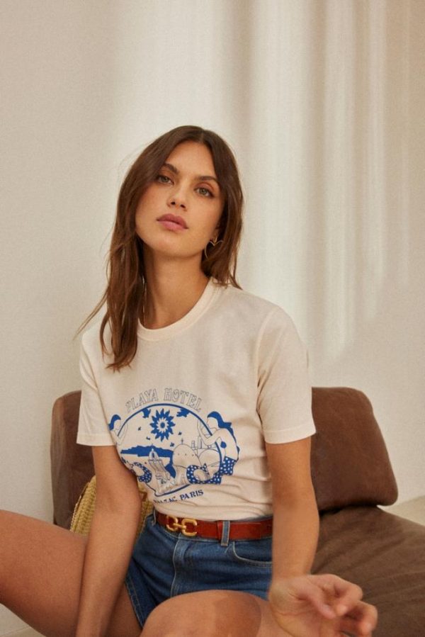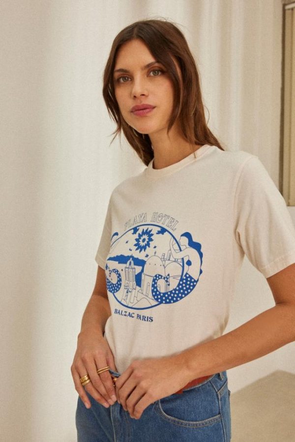 Tee-shirt Bree Playa Hotel écru Et Bleu | Femme Balzac Paris Tops, Tee-shirts Et Bodys