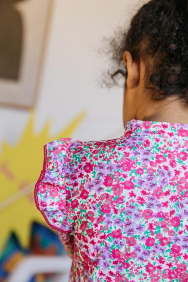 Le tee-shirt de bain Navigatrice aux motifs floraux délicats sublime la protection solaire de vos enfants avec une élégance raffinée.
