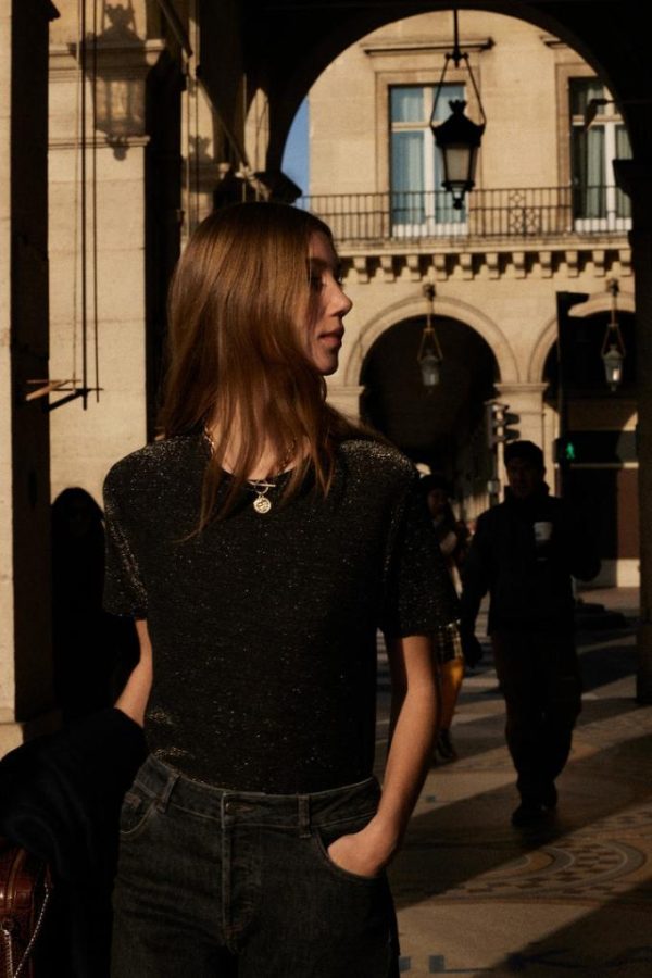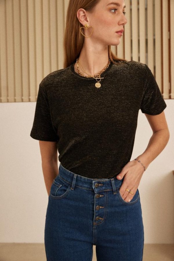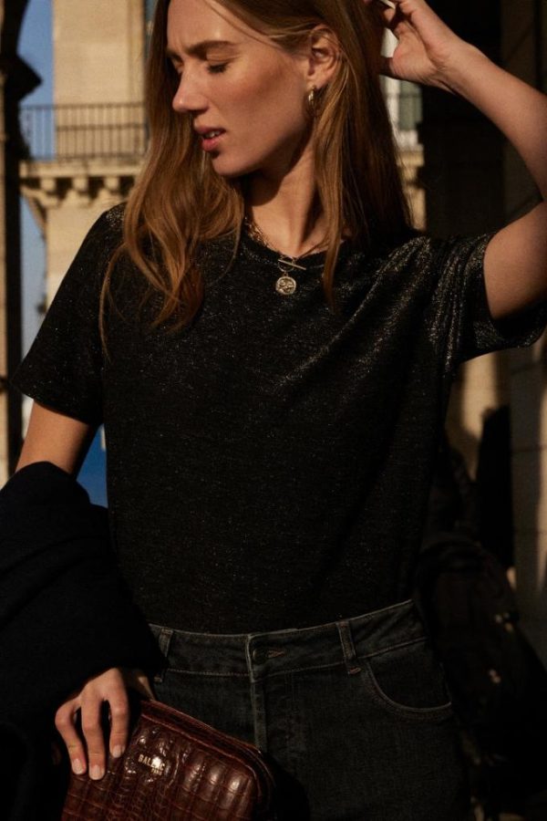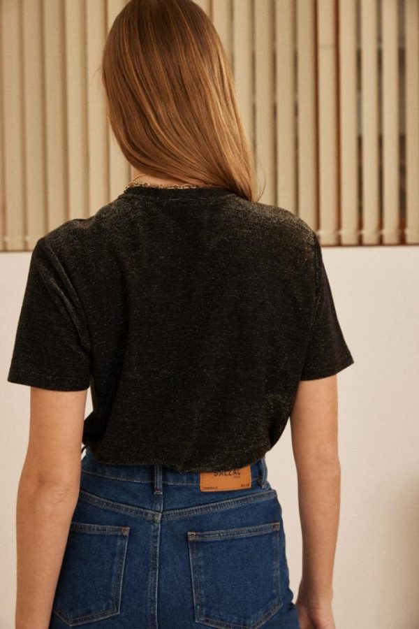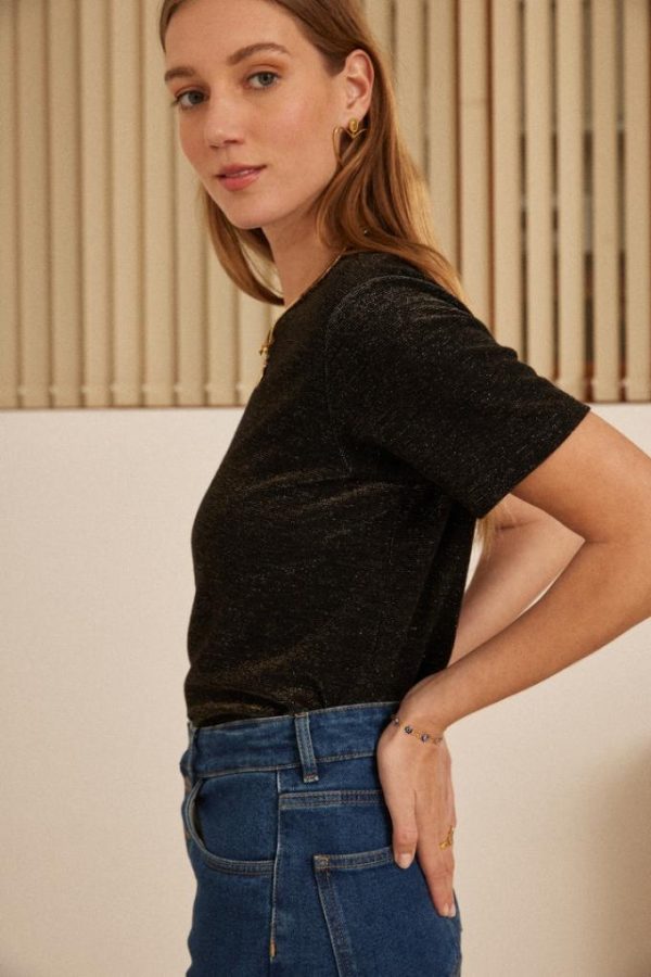 Le tee-shirt Son noir irisé doré est parfait pour les journées comme pour les soirées. Il s’adapte à vos looks.