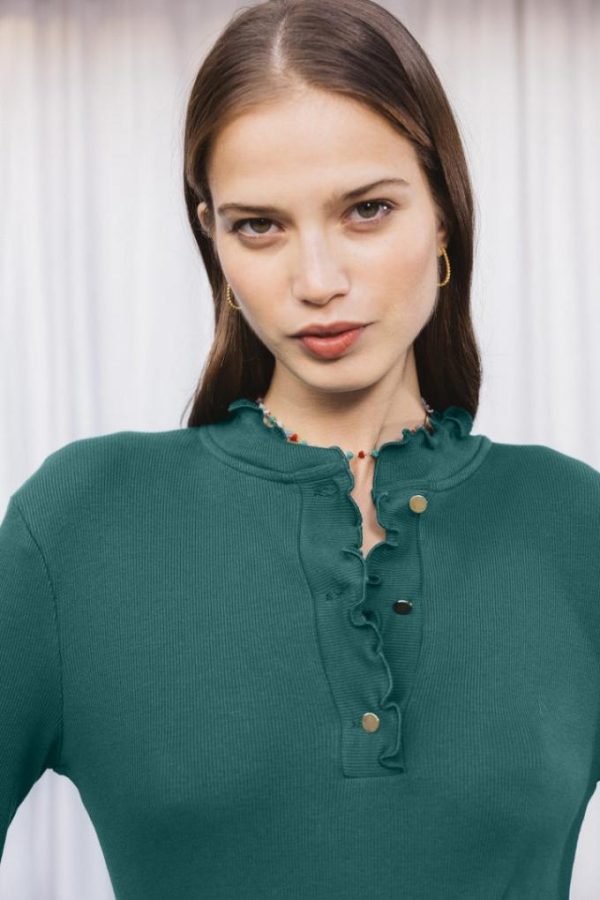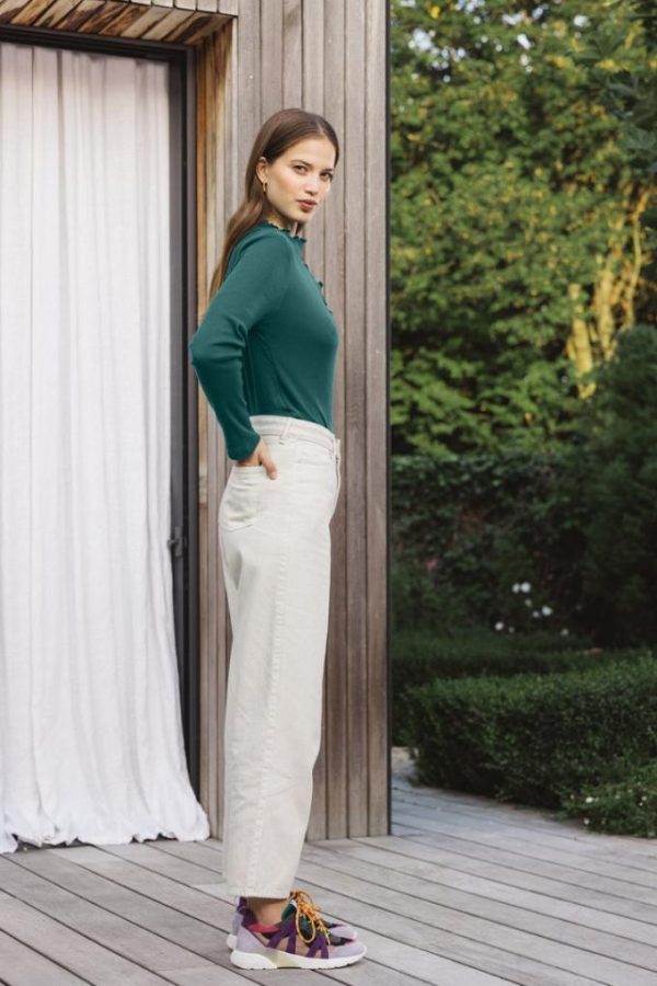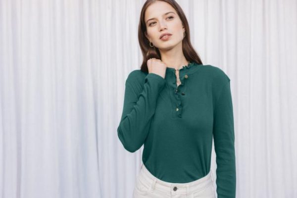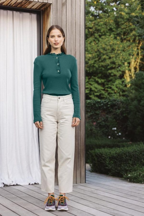 Le top Maurice noir est très confortable grâce à sa matière en coton biologique. On aime son point de bourdon volanté et ses boutons.