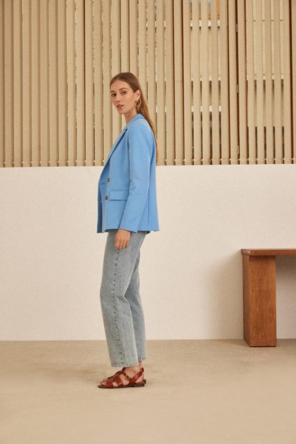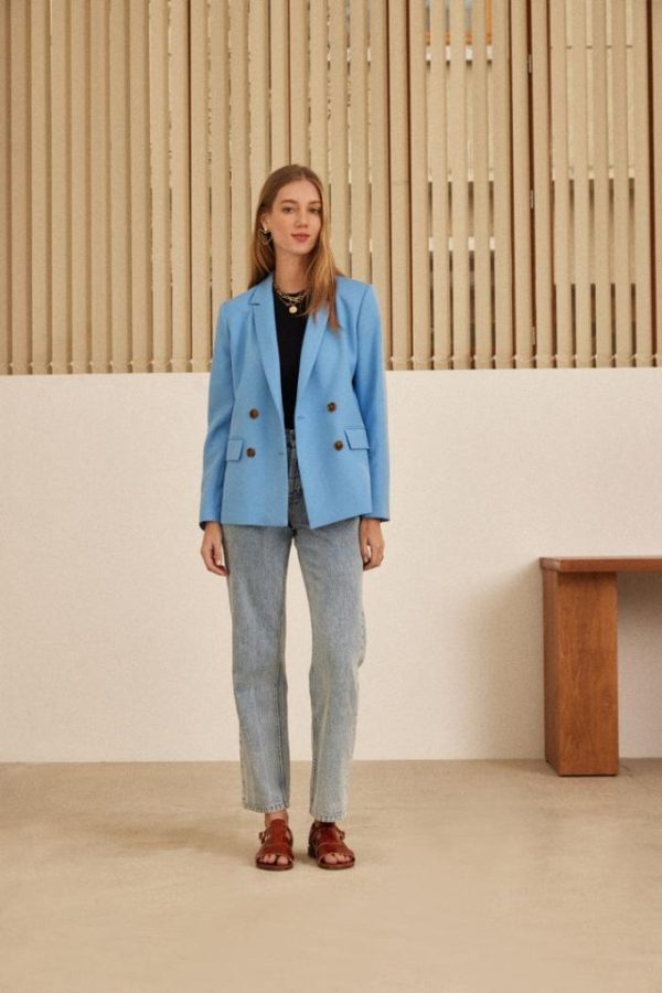 La coupe de la veste tailleur Nael bleu ciel va vous plaire. Classique et élégante, vous pouvez l’associer au pantalon Abramo bleu ciel.