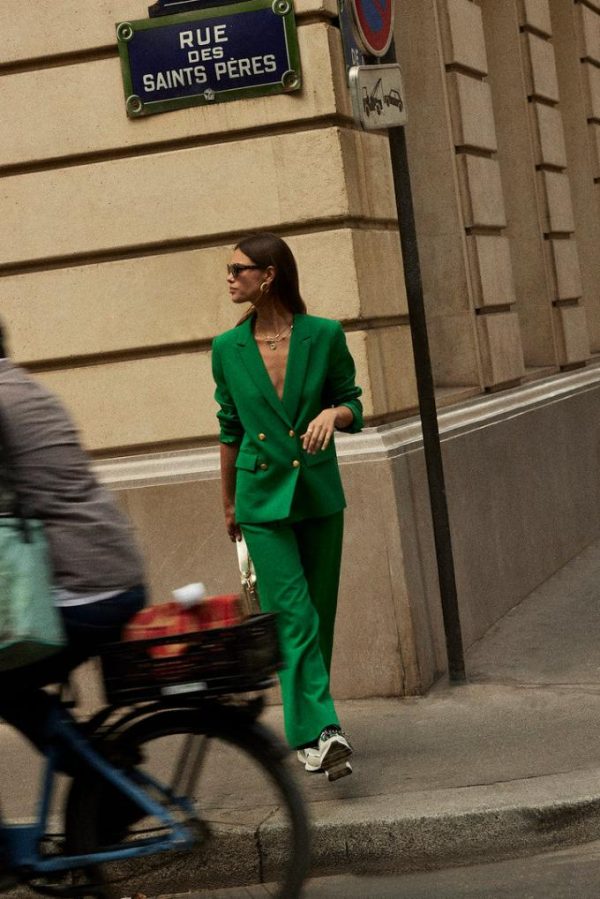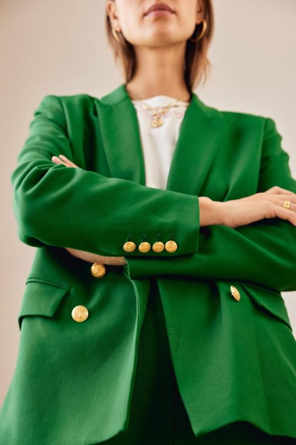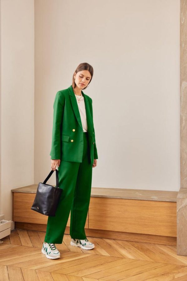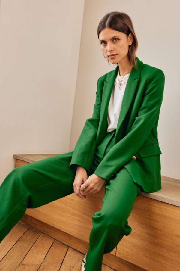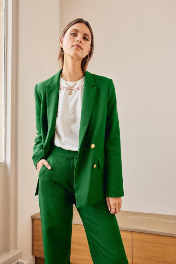 La coupe de la veste tailleur Nael vert pelouse va vous plaire. Classique et élégante, vous pouvez l’associer au pantalon Libre vert pelouse.