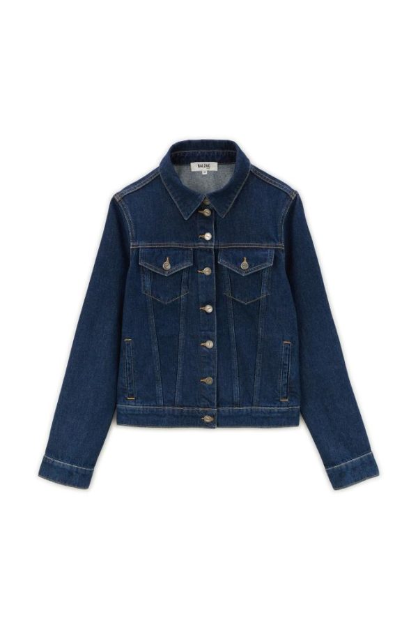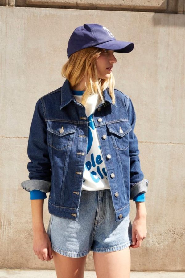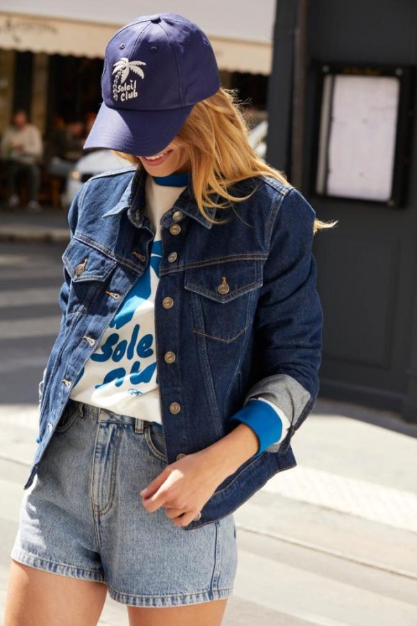 La veste Zoé : ses détails de surpiqûres en contraste, ses poches à rabat et ses boutons siglés, en plus de sa matière, font d’elle LA veste en jean idéale à avoir dans sa garde-robe.